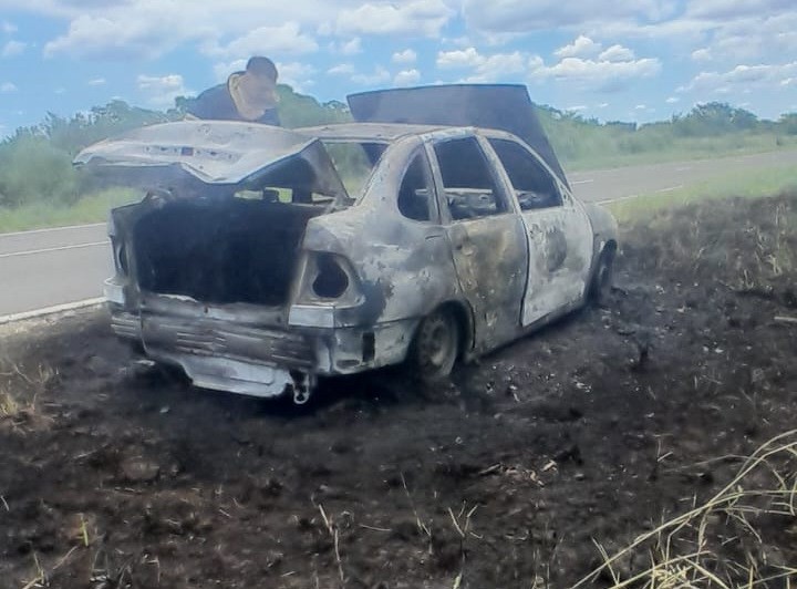 En horas del mediodía de este jueves, alrededor de las 13:15, una dotación de Bomberos Voluntarios de Aldea San Antonio acudió a un llamado de auxilio por el incendio de un automóvil en Ruta Provincial 20, a la altura de Arroyo El Gato.