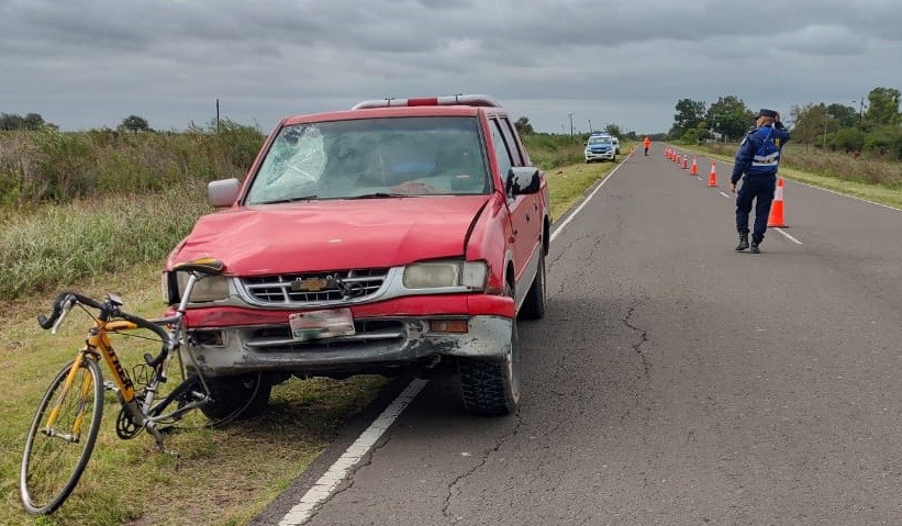 Minutos antes de las 13.30 hs se produjo un accidente de tránsito en Ruta Pcial. 51 a 2,5 km aproximadamente de Urdinarrain, lugar donde por razones que se tratan de establecer un una pick up rojo marca Chevrolet Luv doble cabina 4x4,  conducido por un mayor de edad con domicilio en Pastor Britos, embistió un ciclista de 47 años, domiciliado en Urdinarrain.