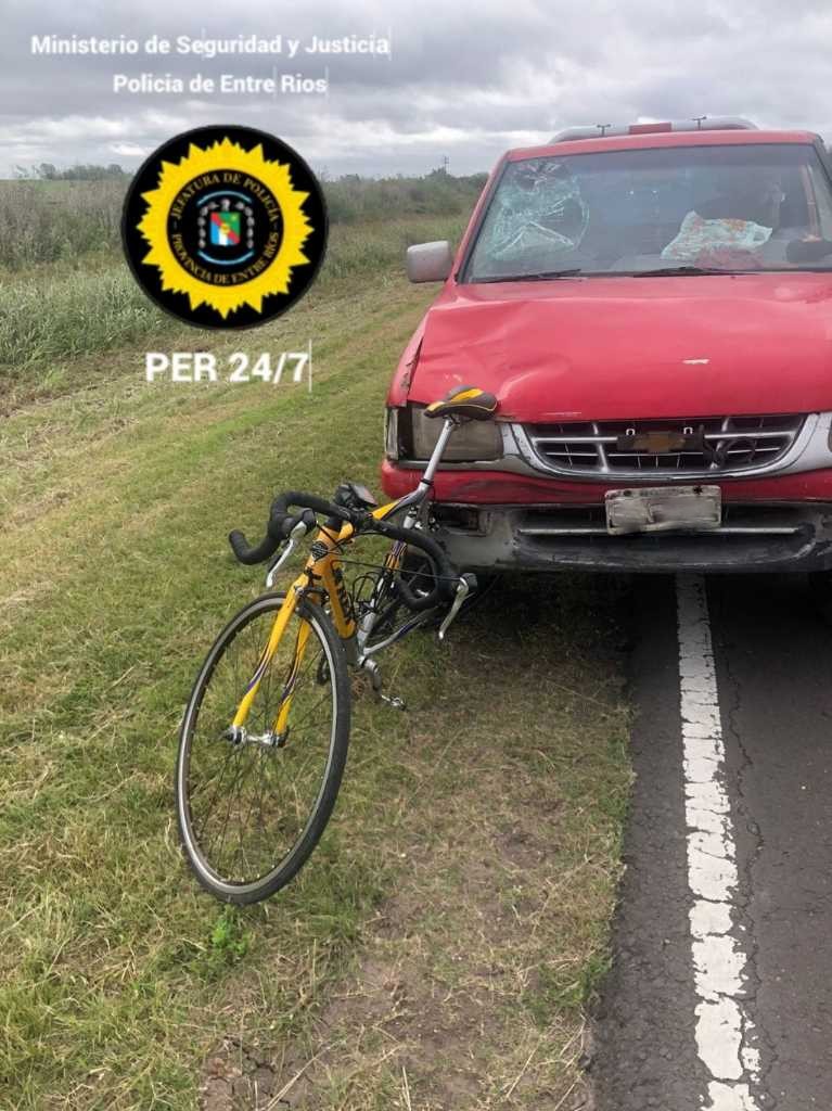 El Ciclista que fue embestido por una Camioneta Chevrolet Luv Doble Cabina 4 x 4 en la Ruta 51, a 2,5 kms de Urdinarrain, resultó con LESIONES GRAVES, de acuerdo al informe médico al que accedió Radio Cristal en la tarde de este miércoles 10.