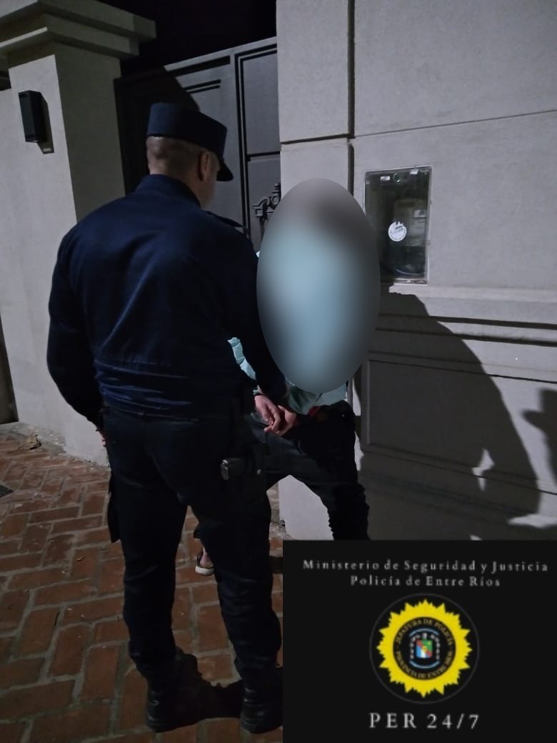 En la madrugada personal policial de Comisaria Urdinarrain, que realizaba recorrida por inmediaciones de la Plaza Urquiza, divisan a un joven en bicicleta, el cual previamente había sido observado en zona del parque la estación en actitud sospechosa, a quien se le da la voz de alto con el fin de identificarlo, el individuo intenta perder de vista el móvil policial, siendo interceptado en calle Urquiza entre Alem y Boulevard 3 de Febrero,