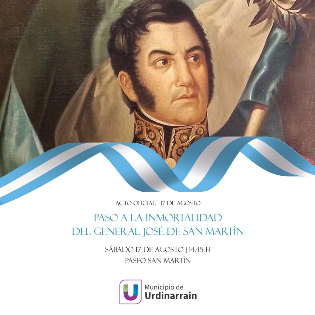 Este sábado 17 de agosto se llevará a cabo el acto oficial, en el Paseo San Martin a las 14.45 h. - Con la presencia del Presidente Municipal Sergio Martínez, entre otras autoridades municipales, se comenzará con el izamiento de la Bandera y un minuto de silencio. Luego se entonara el Himno Nacional Argentino y Marcha de Entre Ríos, dando paso a la Oración Ecuménica y la ofrenda floral, finalizando con la marcha de San Lorenzo.