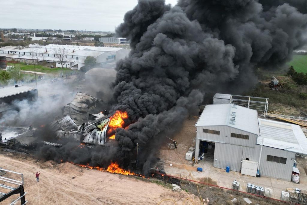 El incendio de gran magnitud que destruyó el Galpón 1 del área productiva de la empresa química From Arg puso en alerta a las 10.30 de esta mañana a Gualeguaychú. En minutos, 15 bomberos del cuartel Gualeguaychú y un número importante de Brigadistas de Interplantas del Parque Industrial respondieron a la emergencia.