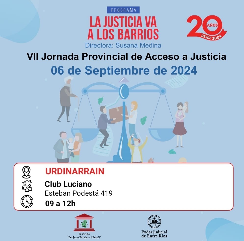 En 23 localidades de la provincia se realizará este viernes la “VII Jornada Provincial de Acceso a Justicia”. Es la segunda que se lleva a cabo este año en forma simultánea en la provincia con el fin de facilitar el acceso a Justicia a las personas que lo necesitan. Para ello, jueces, defensores, fiscales, profesionales de equipos interdisciplinarios, y jueces/as de Paz atenderán en cada departamento para colaborar en la solución de distintos temas de competencia judicial.