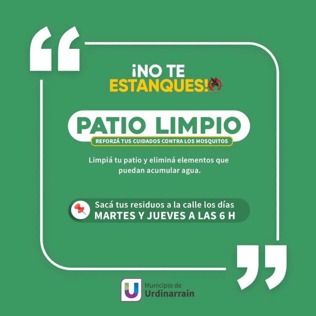 Limpiá tu patio y saca los residuos los días martes y jueves a partir de las 6 h, para que los recolectores puedan retirarlos.