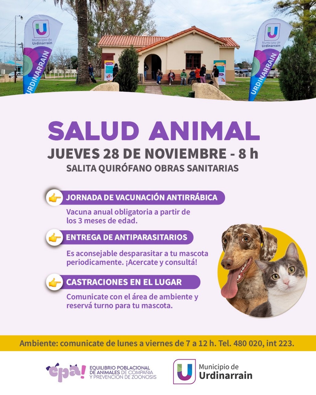 Nueva jornada de salud animal - Este jueves 28 de noviembre, a partir de las 8 h, se realizará una nueva entrega de antiparasitarios, vacunación antirrábica y castraciones gratuitas de perritos/as y gatitos/as