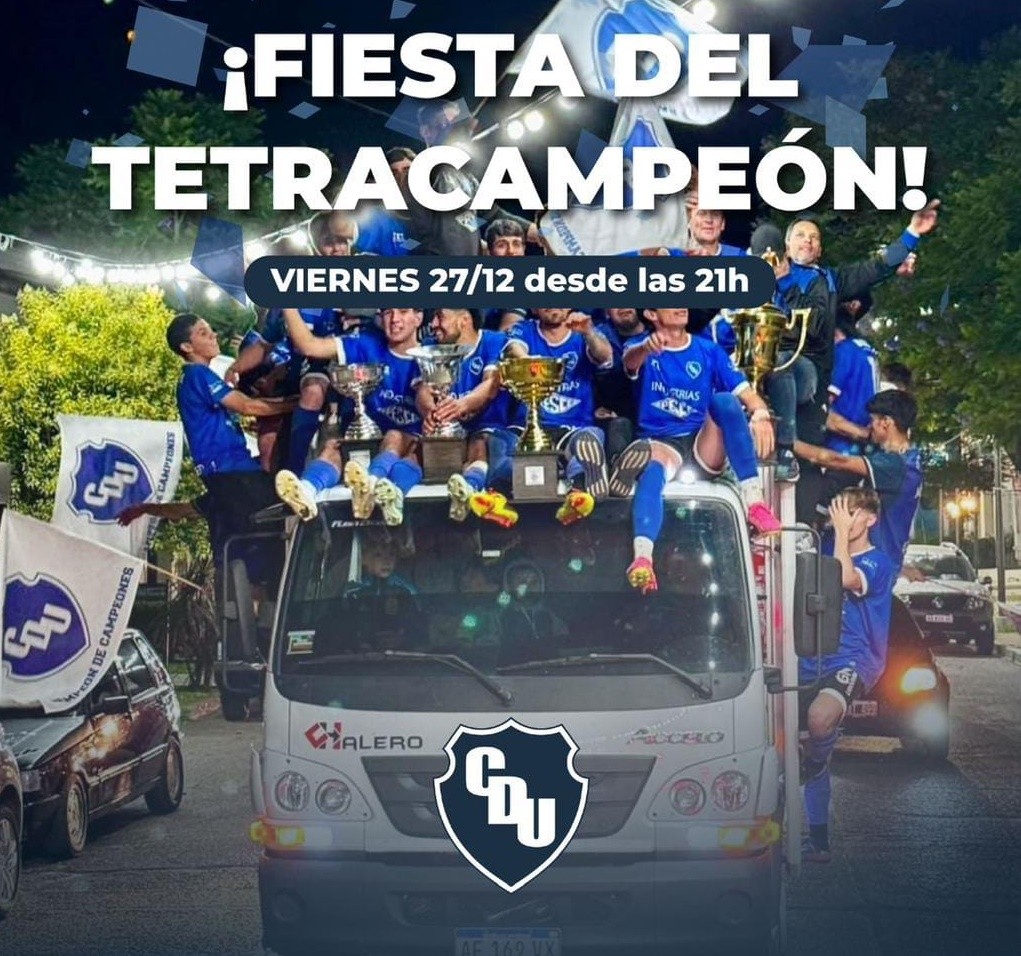 En la noche de este Viernes 27, Deportivo Urdinarrain en su estadio, llevará a cabo la Fiesta del Tetra Campeón 2024, con una entrada mínima de $ 1.000 con sorteos (con la entrada) Servicio de Cantina, Pizzas, Hamburguesas, CVhoripanes, bebidas. Entrega de premios a los campeones y reconocimientos a Fútbol Infantil y Futbol Femenino