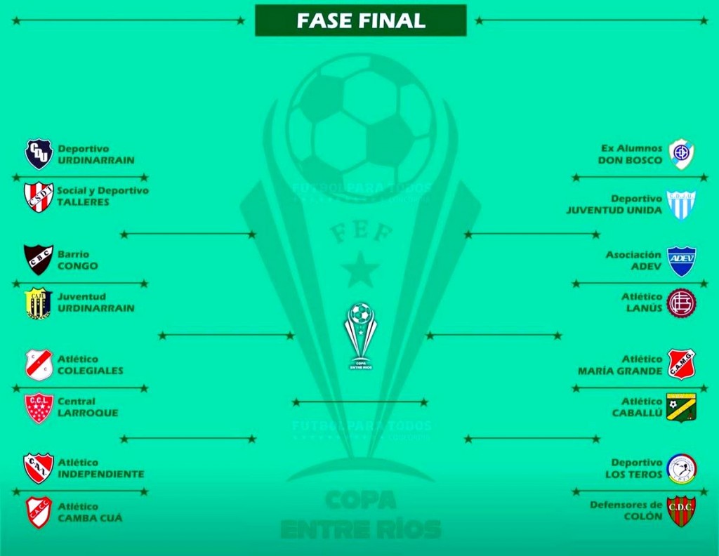 Copa E.Rios; Se definieron los cruces: Talleres (Federal) vs Deportivo - Juventud Urd vs Brio. Congo (La Paz)