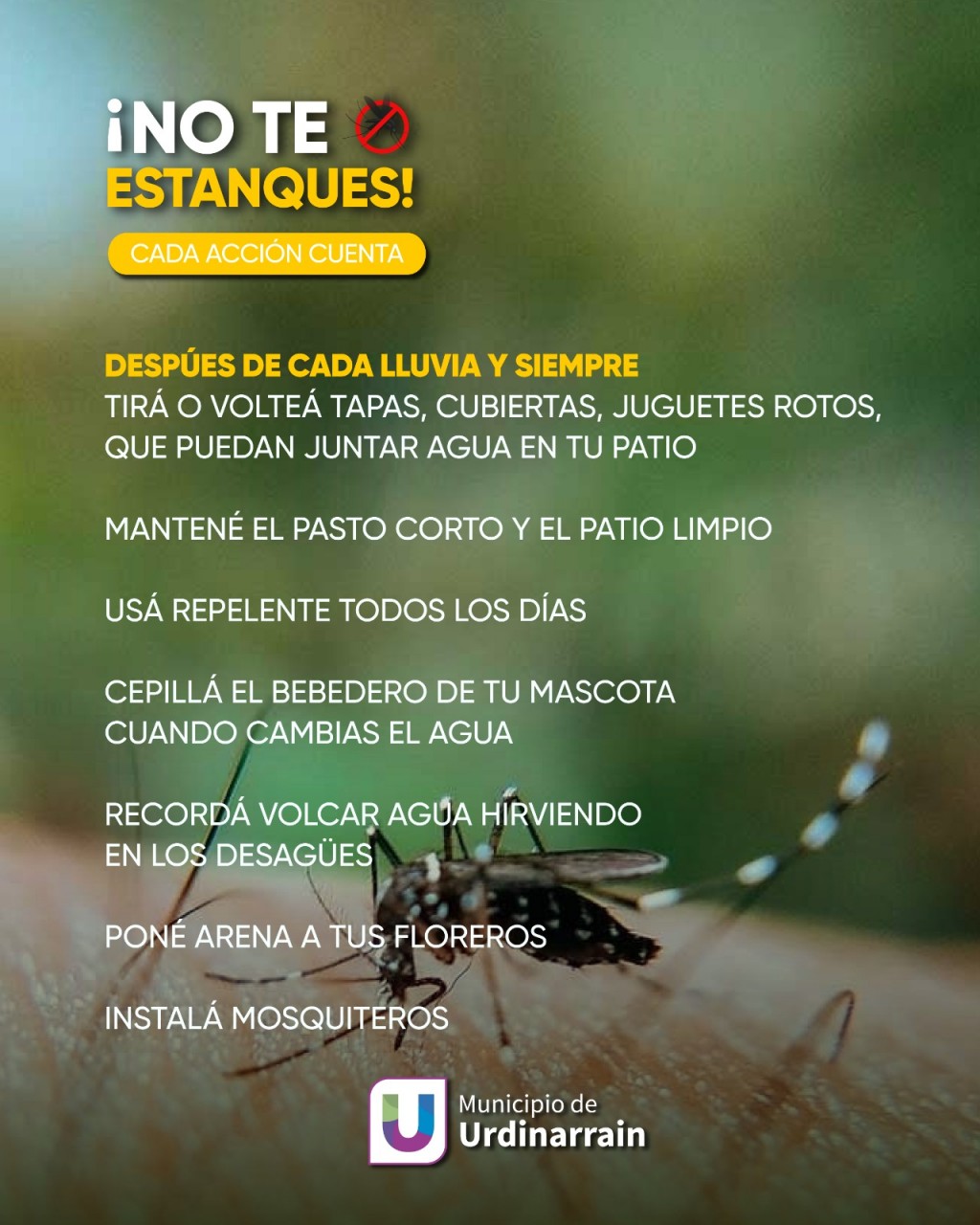 Seguí estas indicaciones y juntos hagamos una ciudad más segura contra el dengue.