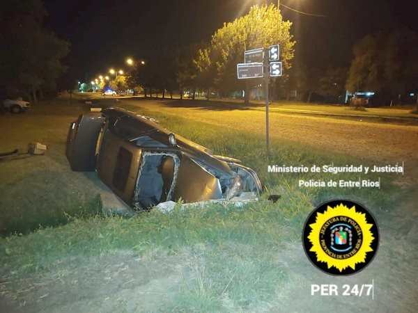 En la madrugada de este sábado se produjo el despiste y vuelvo de un coche, en un canal a cielo abierto de calle Bv 25 de Mayo y Alvear.