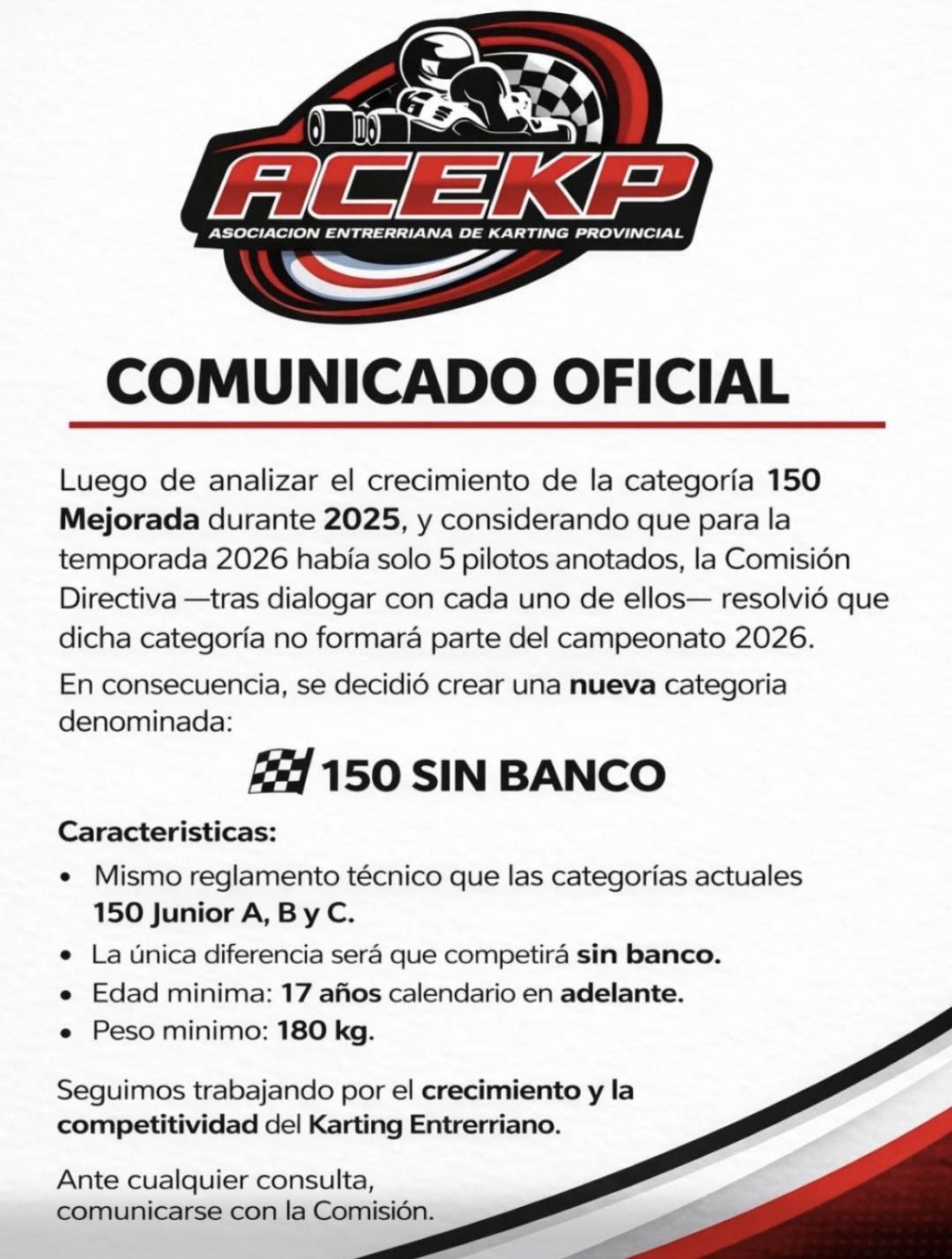 Este pedido ha sido debidamente autorizado por la Federación Automovilística Entrerriana”, finaliza el Comunicado.