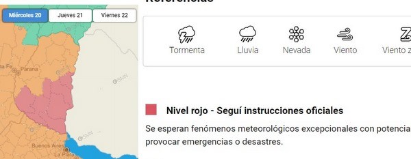 TIEMPO: ALERTA ROJO PARA EL SUR ENTRERRIANO