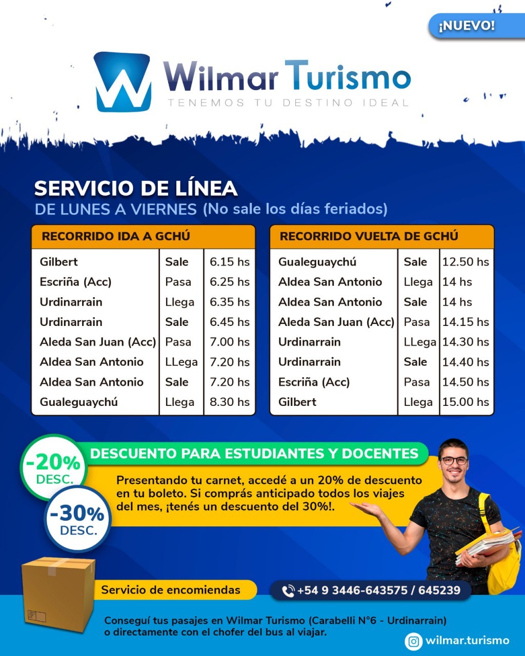 Viaje con Wilmar todos los dias desde Gilbert, Urdinarrain, Aldea S.Juan y ASA a Gchu