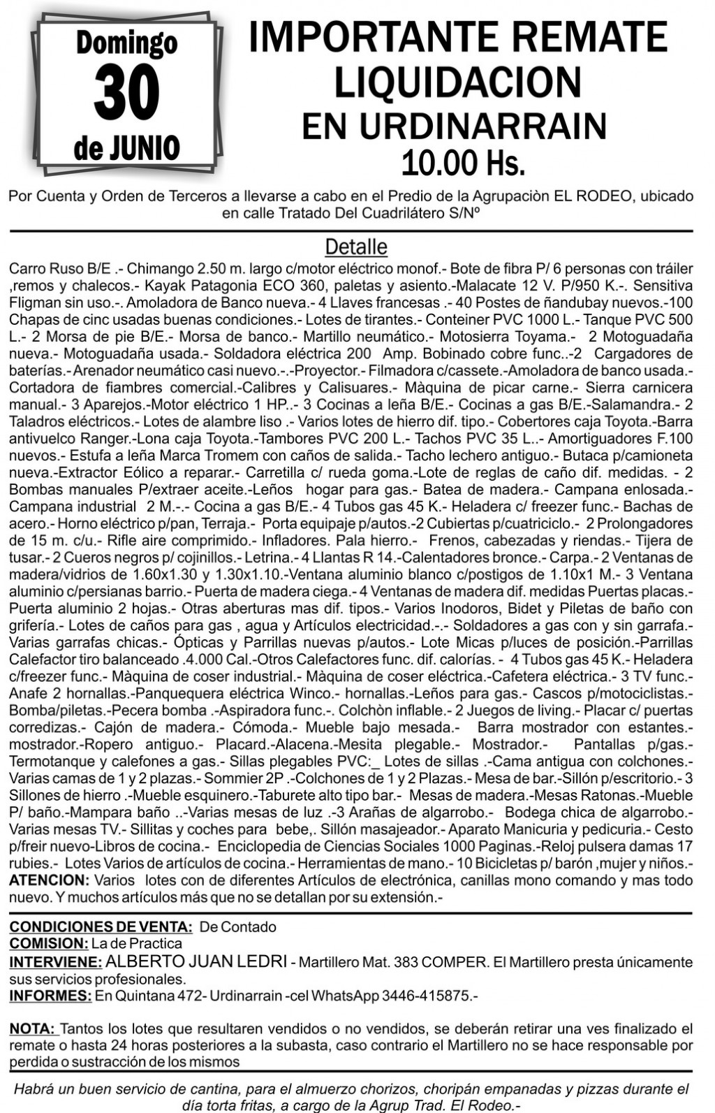 Domingo 30 de Junio REMATE LIQUIDACION